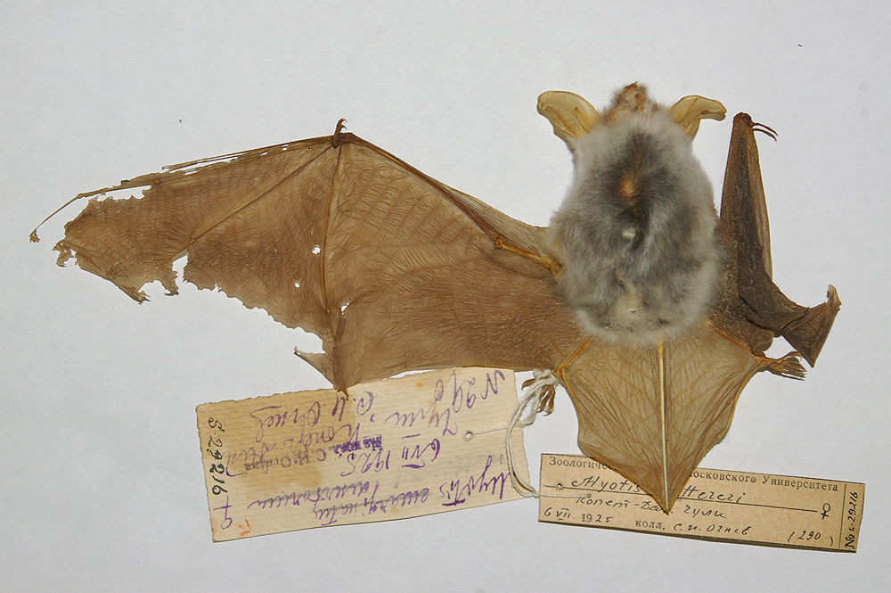 Кузякин А. П. 1935. Новые данные по систематике и географическому распространению летучих мышей (Chiroptera) в СССР // Бюллетень Московского общества испытателей природы. Vol. 44. No. 7. P. 429-438.