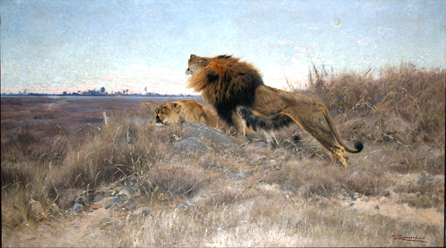 The painting "Lions" by W. Kuhnert from the Museum art collection.