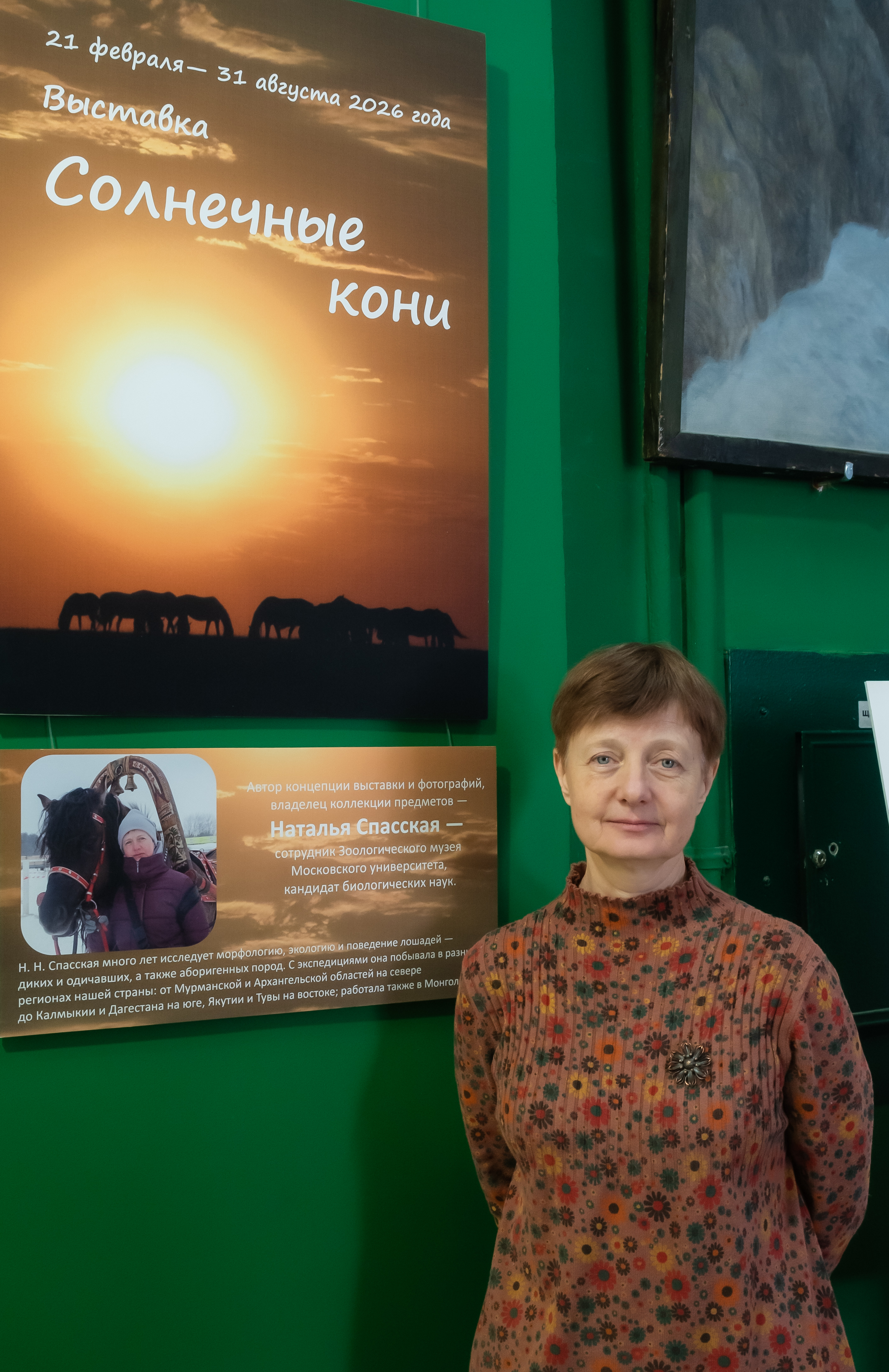 На выставке вы узнаете, какую роль лошади играли в жизни человека на протяжении веков, познакомитесь с традициями разных народов, связанными с лошадьми. Автор выставки Наталья Спасская, ученый секретарь музея, кандидат биологических наук. Наталья Спасская много лет исследует морфологию, экологию и поведение лошадей — диких и одичавших, а также аборигенных пород. С экспедициями она побывала в разных регионах нашей страны: от Мурманской и Архангельской областей на севере до Калмыкии и Дагестана на юге, Якутии и Тувы на востоке; работала также и в Монголии. Наталья Николаевна выделяет четыре основных роли лошадей во взаимодействии с человеком и рассказывает на выставке о каждой изх них.
